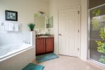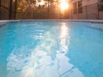 -Extra privacy! This home is a corner unit that backs up to a beautiful nature view. There’s no neighboring home on one side, and the home on the other side is a good distance away, so you can enjoy the pool all to yourself.